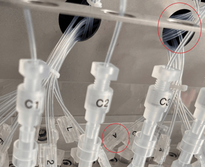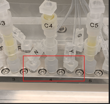 - 💡 Tip: One gas manifold is usually for reagents; the others are for amidites.