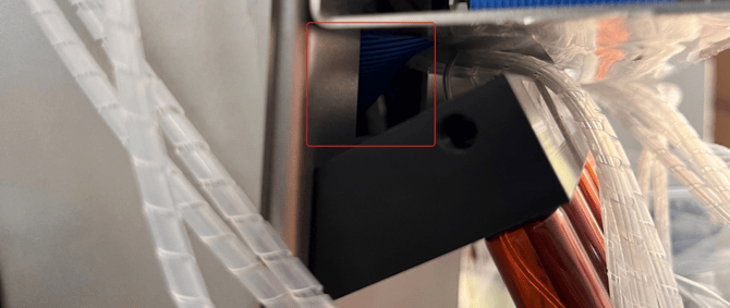 Feed both the liquid and gas lines for the cap you're removing through the slot at the bottom front of the instrument’s sheet metal if it. The current bottle cap should now be removed